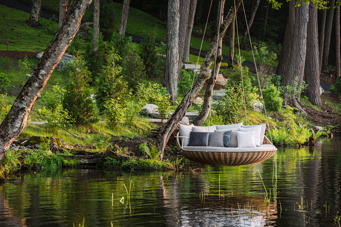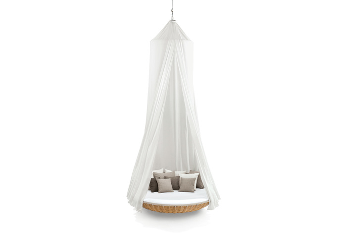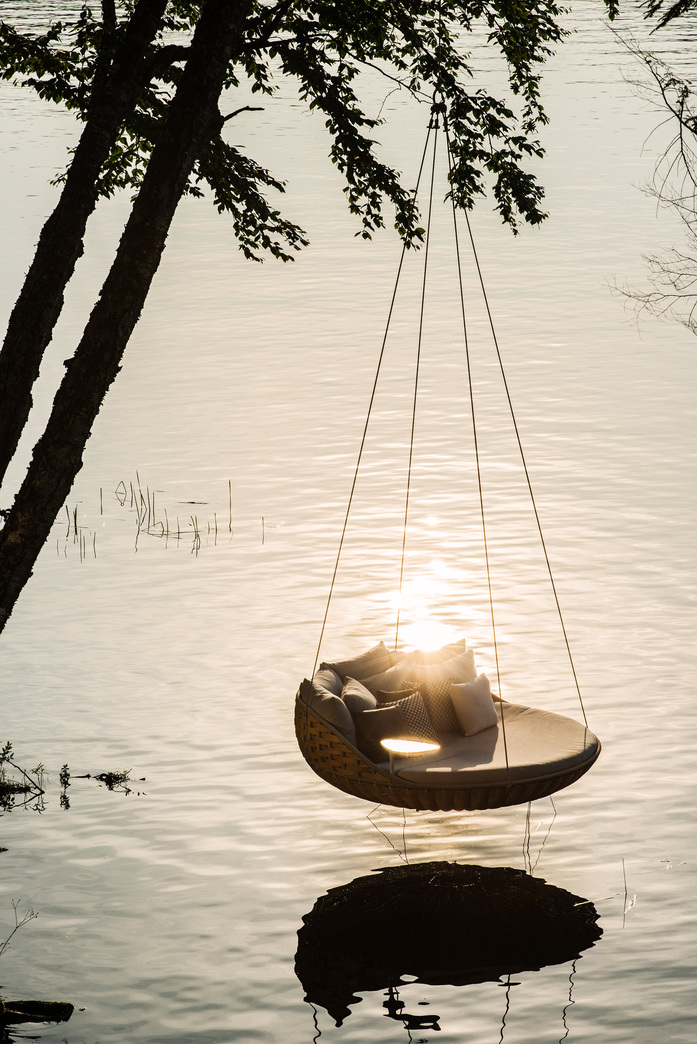 While it shares half of its name and much of its basket-like structure with DEDON´s iconic NESTREST, designer Daniel Pouzet´s creation, SWINGREST, is in a class all its own. From its rotating tabletop to its elegant suspension system, SWINGREST is the ultimate hanging sofa, perfect for suspending on a terrace or veranda, or even indoors.