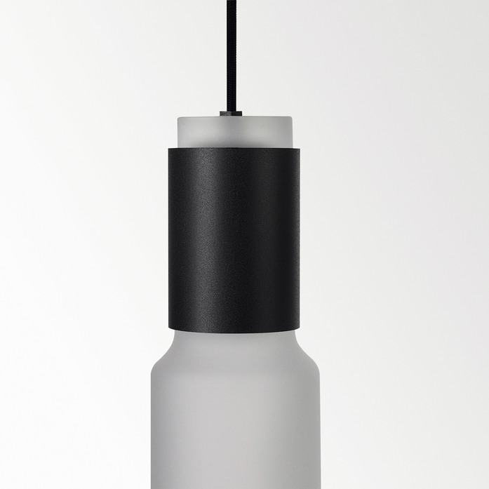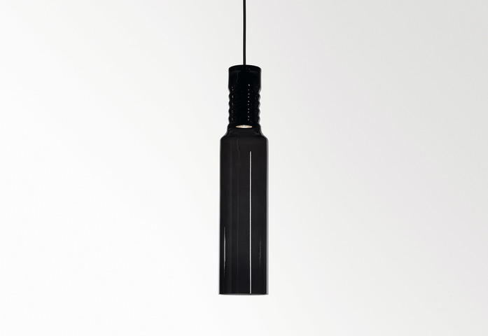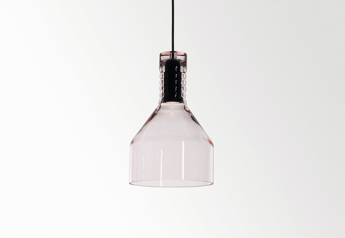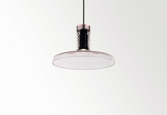 (pink, amber, smoke or mist), each recognizable yet unique in all respects. A family of suspensions that play on the visual contrast between the coloured and white blown glass, combined with different shapes and colours, also ideal for multiple compositions.