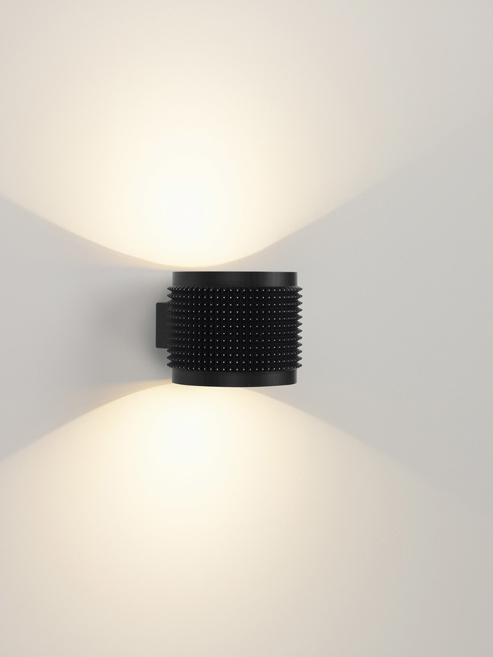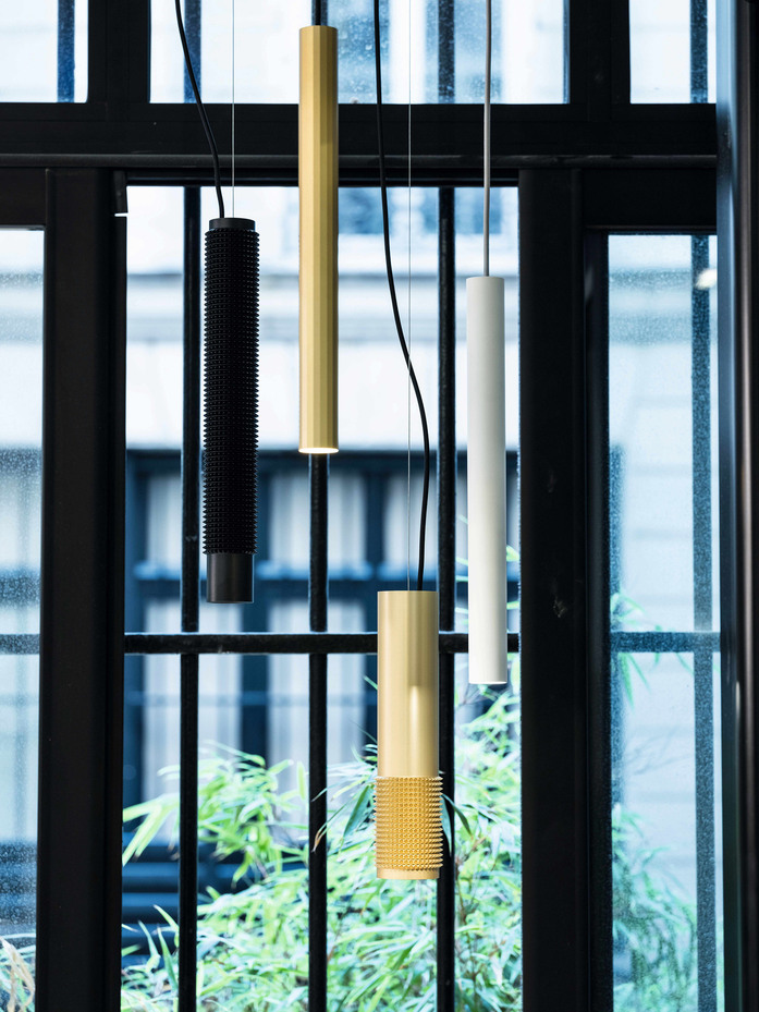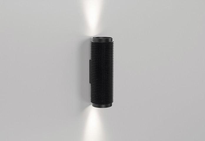 Step away from brave, alter yourself and dare to dare. This spiked design on the well-known Spy family breathes creativity and allows you to play with light and texture. This Punk design has been added within the existing range as a sleeve – for Spy with Ø62mm – or as a single luminaire, leaving you with the familiar optics but adding new experiences. To be able to integrate this experience throughout your project, new pendants and wall luminaires have been launched with Punk design. Available in Black, Gold Champagne and Black Pure, a Black colored finish with pure aluminum topped spikes.