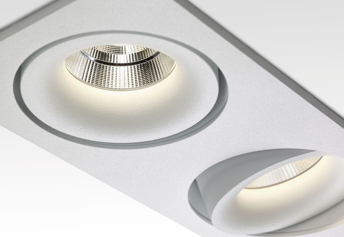 This new generation of dimmable spots guarantees a powerful warm light with a low energy consumption and the perfect balance between light quality and energy efficiency. The design of these recessed conical spots deliver a hardly visible transition from the intense light with the ceiling, resulting in a aureole effect and giving the space an extra dimension.