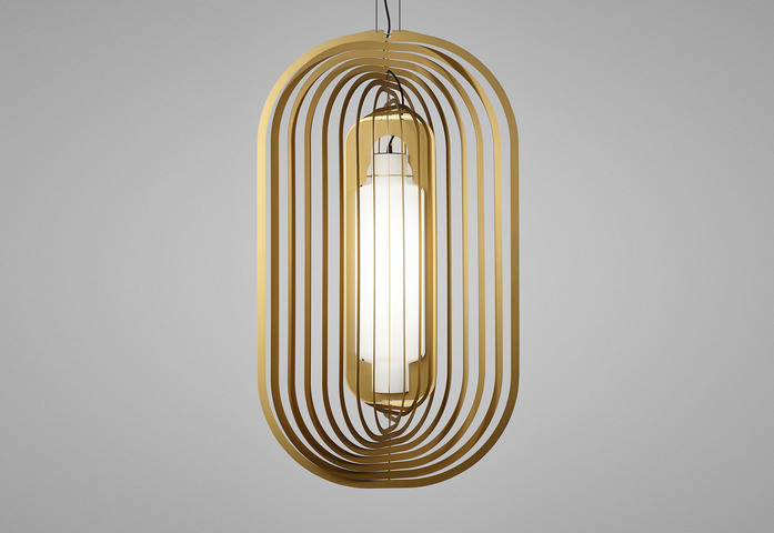of circles or rectangles, both structural and decorative, generating a seductive luminous effect. Even when not turned on, they bring texture and character to rooms, defining different areas with small and large contemporary pendants.