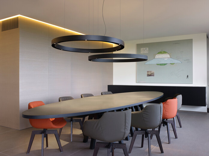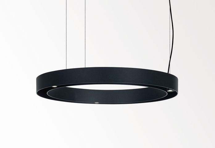 The initial Super-Oh range was launched at Euroluce 2015. A series of slim black rings floating through space, finished either with integrated powerleds or the more retro-look version with classic light bulbs. Now Delta Light builds on the success of the launch, expanding the range feature multiple sizes and applications. With its 25cm or 39cm diameter, the Super-Oh XS (Extra Small) can be considered to be “little one” of the family. With only 5cm height, this perfectly curved circle holds a polycarbonate, hiding an intense clustered inner circle of the latest powerleds. This circle of leds is specially designed to guarantee a uniform and perfectly balanced light output, resulting in a very enjoyable diffuse lighting effect. The Super-Oh XS is available either for direct mounting, as a suspension or with a pivot, a flexible ceiling bracket enabling the user to tilt the disc up to 45°, and rotate 360°. The large sized Super-Oh range now also features a brand-new SBL version, a circular aluminium profile with integrated polycarbonate, offering a perfectly seamless ring of light. This SBL version comes in different diameters, either down or down-up light, with either multiple fixation points or a central suspension. To keep a consistent design code throughout your project you can now also integrate a trimless Super-Oh. The result is a fully recessed, slim aureole. A symbol of infinity, without beginning or end, perfect, the ultimate geometric symbol seamlessly integrated into architecture. The Super-Oh can also be combined with Delta Light’s brand new Wireless Control Dimming module, allowing you to manage your Super-Oh from your mobile device.
