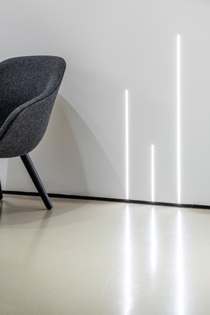 The Tagline made-to-measure profile provides an ultra-minimalistic light line that integrates seamlessly with the architectural lines of your project. Limited to only 7mm the Tagline seems almost invisible, a slender line of light that cuts through space.