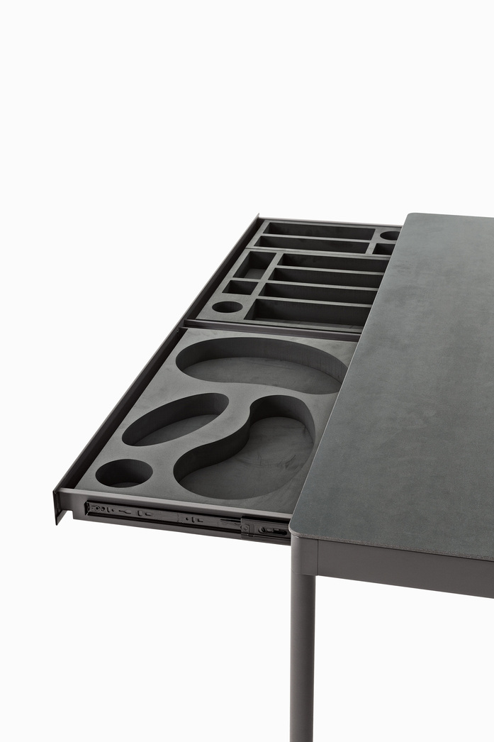 Under the motto ‘Metal is our nature’, Desalto is presenting a dialogue between contrasts at the Salone del Mobile 2025: soft upholstery and hard metal. Francesco Rota has devised an installation that harmoniously combines this contrast and picks up on the geometry of Desalto's metal furniture.