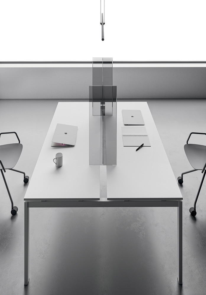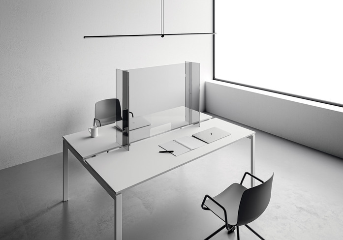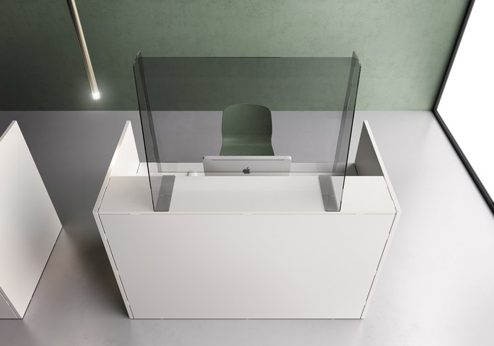 These are transparent plexiglass screens adaptable to most of the surfaces, therefore they can be easily integrated into an existing workstation. They are also equipped with a self-supporting system that allows you to place them on receptions, desks, tables and other workstations.