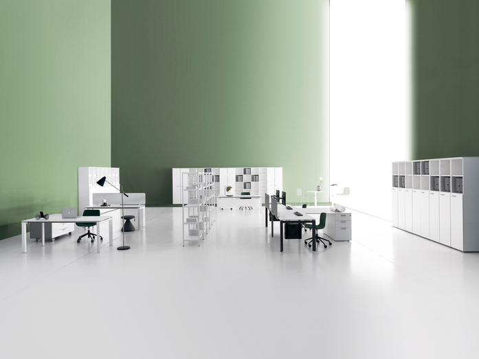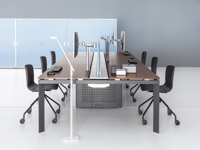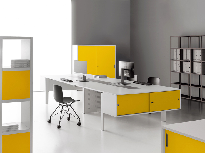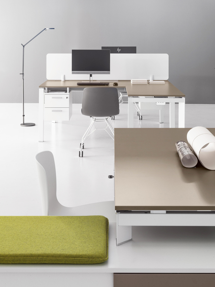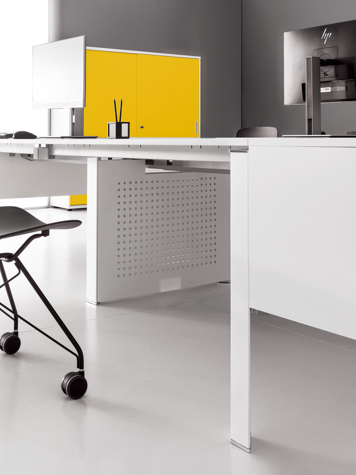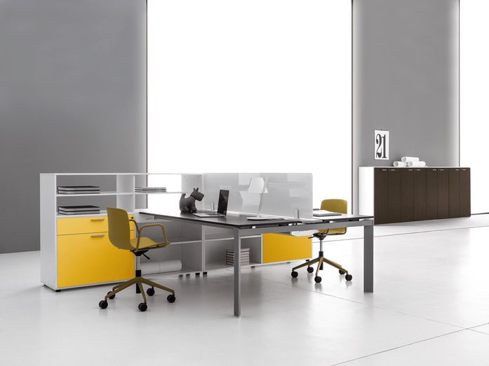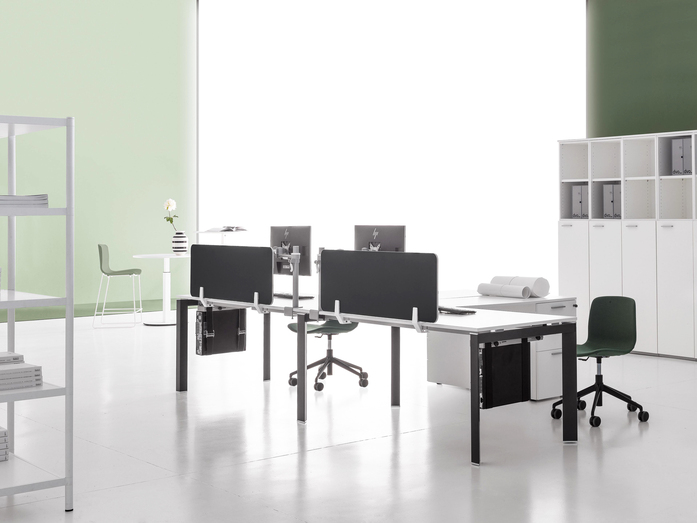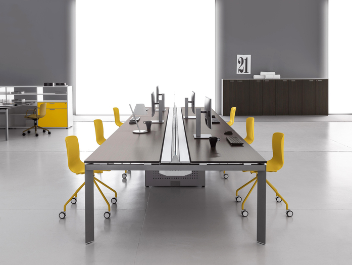 Furnished with taste and functionality. This workstation range steps out for its essentiality and simplicity. Responds to the fundamental concepts required in a work environment, extremely functional in shared workstation solutions.