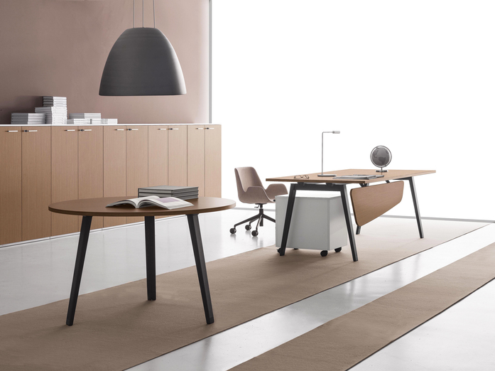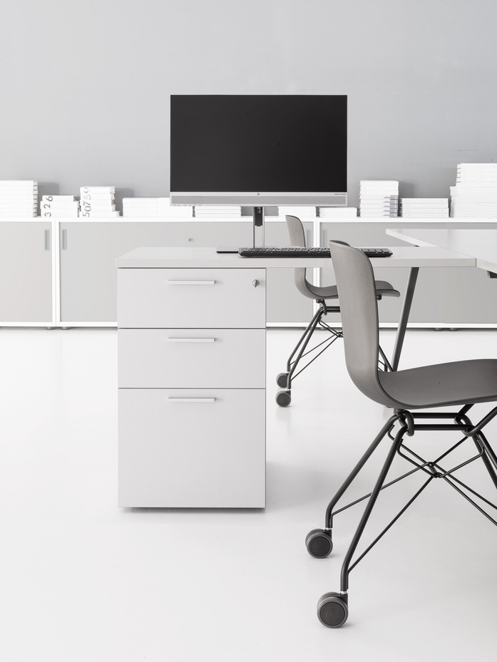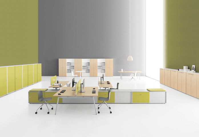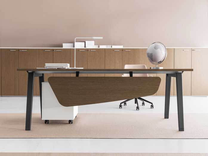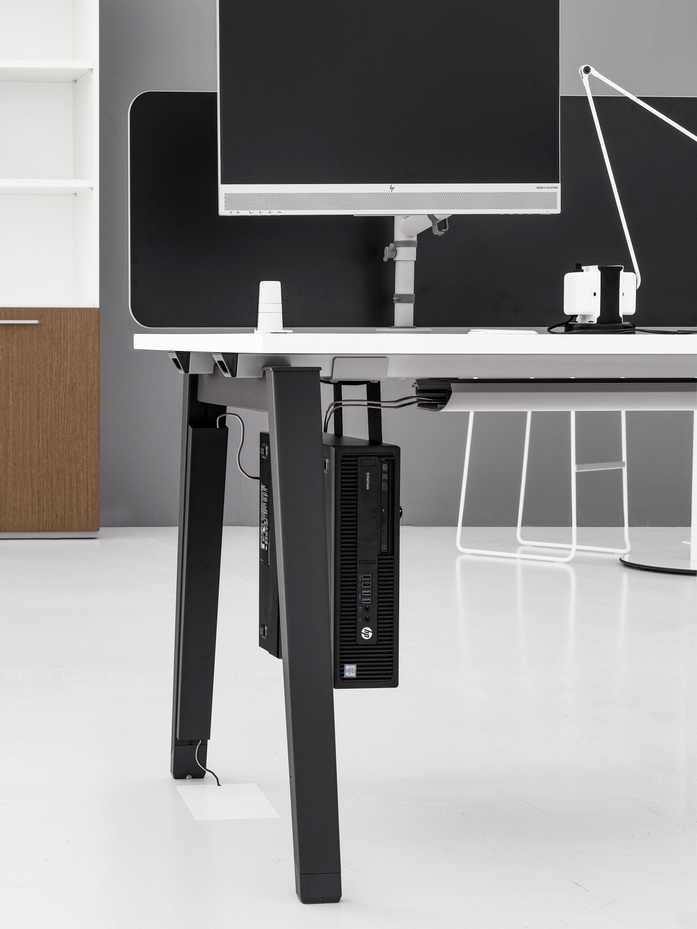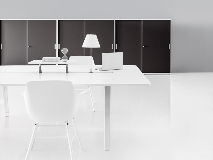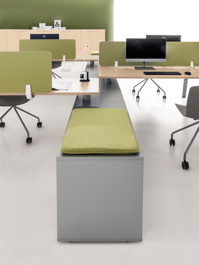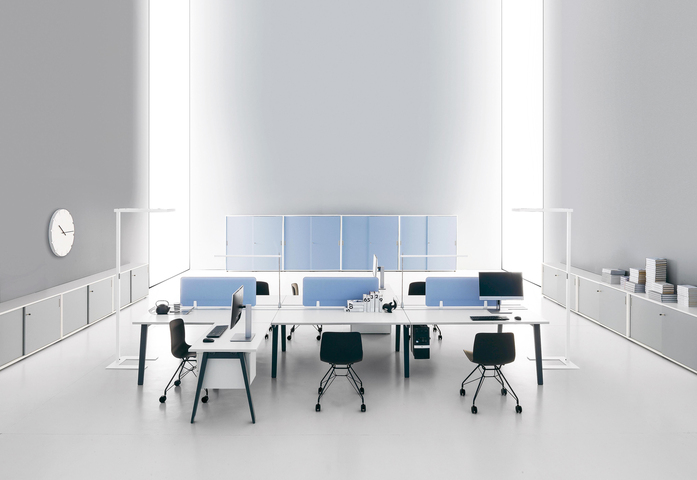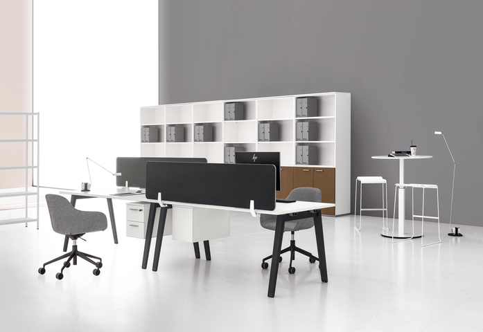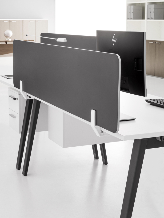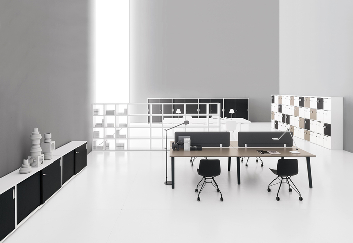 New furnishing solutions for workstations. Versatile, fresh styled and functional, a range with an extremely easy assembly system. This series fully furnishes operative and executive spaces, in line with today’s work evolutions. Formal lightness and style are the main ingredients of an operational system characterized by tables with trestle legs, in single or bench version.