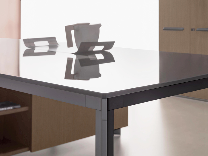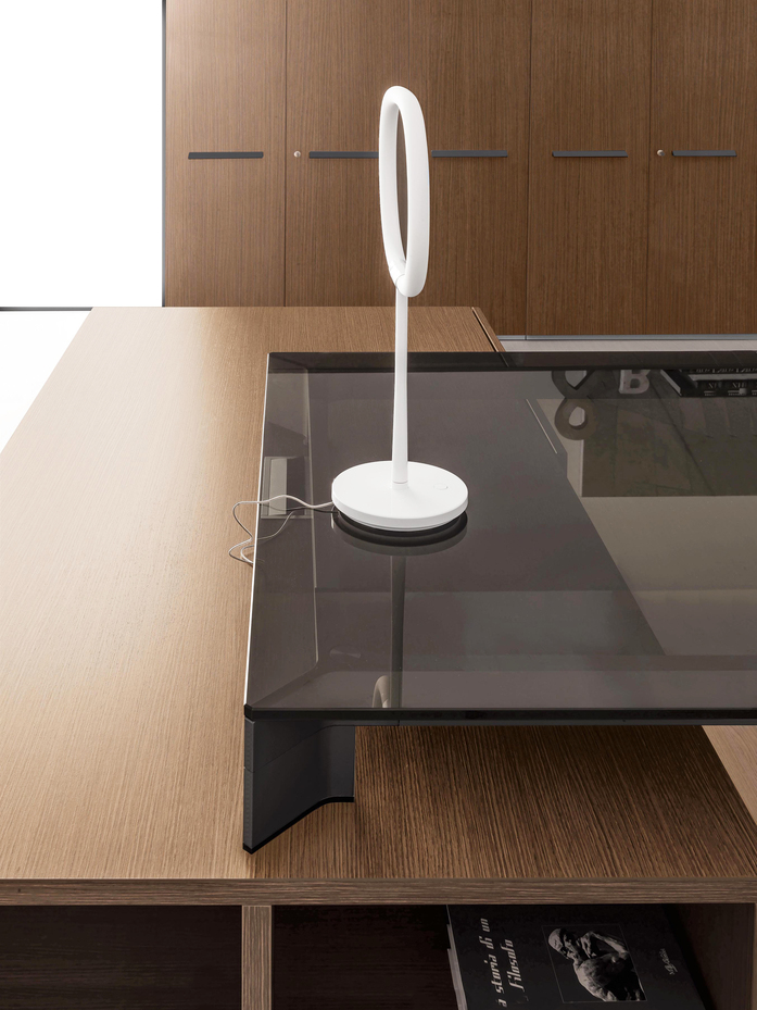 A strong identity. A collection of great aesthetic impact, where the luxury of the worktops and the preciousness of the finishes create perfect balance between functionality and design, between elegance and technology. Fine materials wisely combined, polished inlays, careful colours and wood choices let handmade traditions emerge and, most of all, lead back to the high class of executive furnishings.