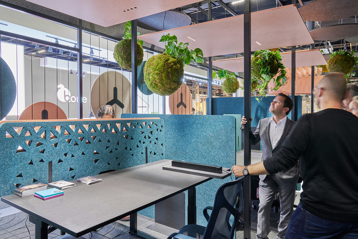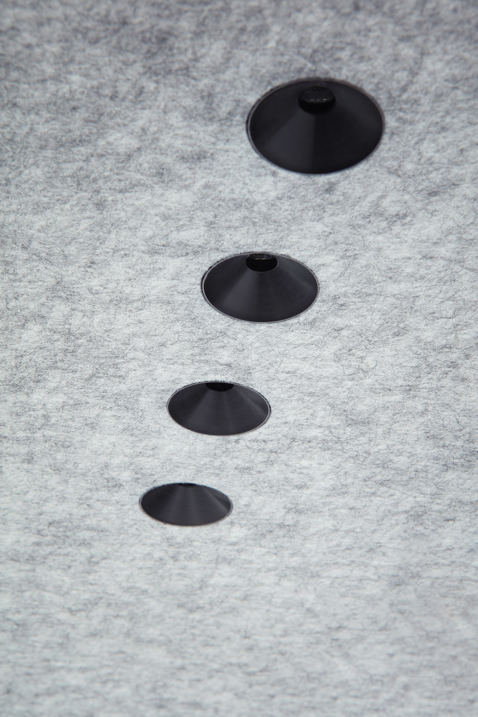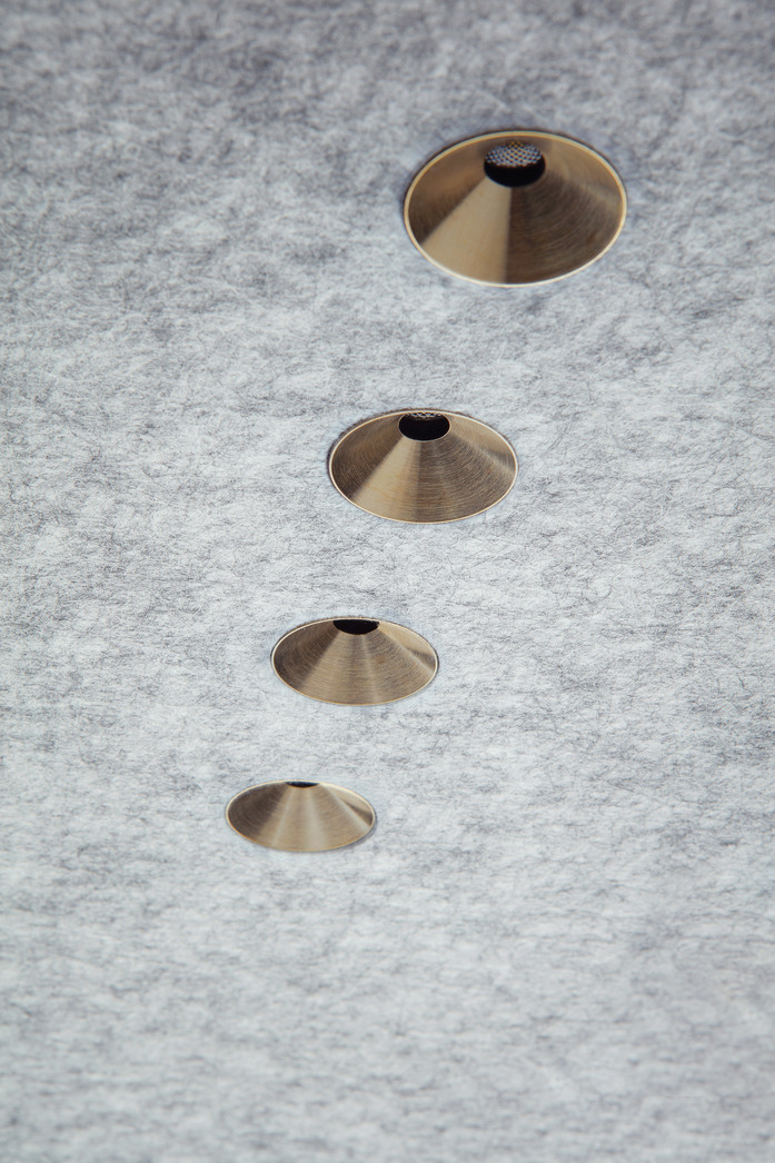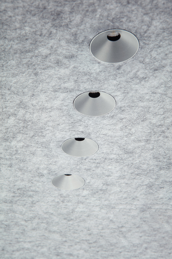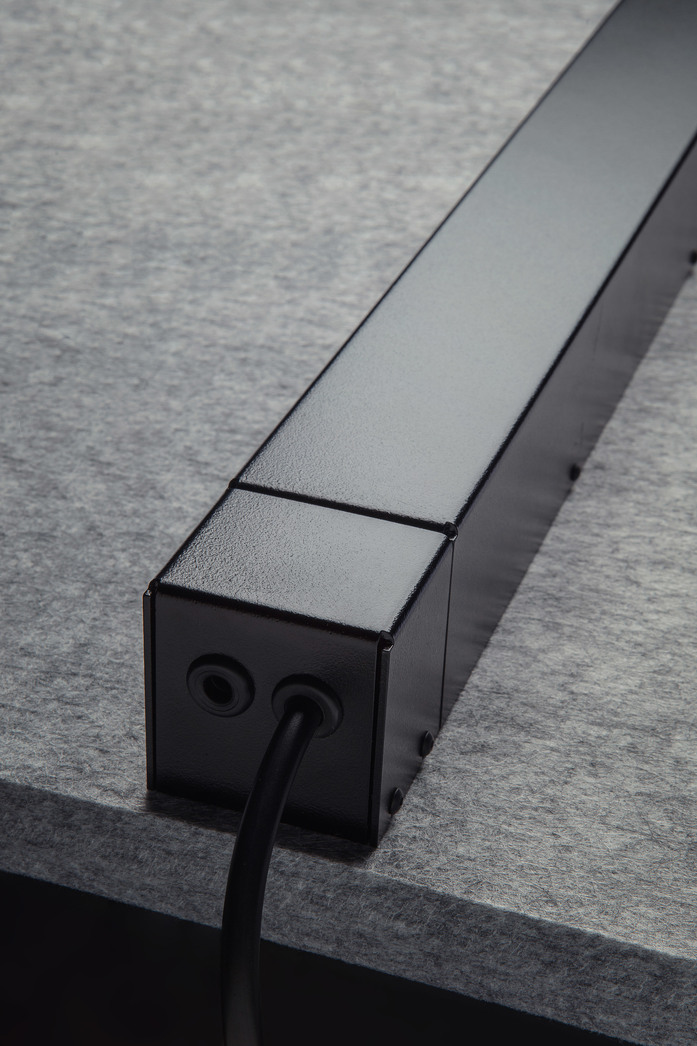 Probably the coolest workplace lamp which was developed in cooperation with Bartenbach for demanding architects. The elegant EchoLED® EQ4 integrates itself almost invisibly into the high performance acoustic sails and offers an extraordinary light quality. The module offers all possibilities of digital light control, is standard with DALI drivers and dimmable. The luminaire is supplied ready plugged in and can be connected or replaced like a floor lamp. The modules are available in black, brass or aluminium.