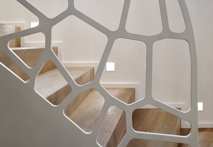 The existing staircase was carefully evaluated by EeStairs using modelling technology and then made a renovation plan was agreed. The client identified EeStairs Cells® balustrade - an organic shape-inspired steel system that can be tailored to the regulatory and customer’s requirements, as the preferred option.