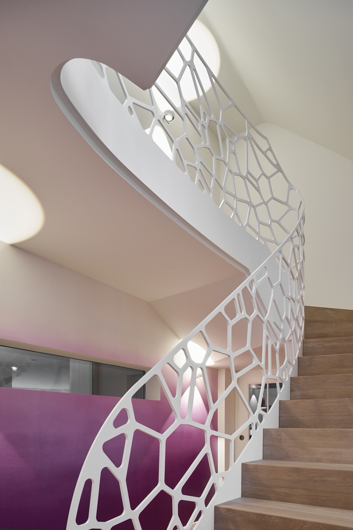 Staircase becomes art An existing helical staircase in Bonn, Germany - has been turned into a work of art thanks to EeStairs' Cells® balustrade, a design option which exemplifies the power of simplicity.