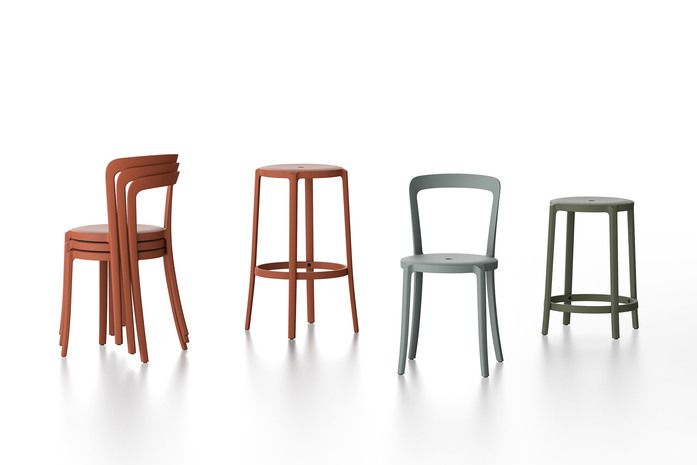 Emeco and Barber & Osgerby introduce “On & On”, a collection of chairs and stools that breaks new ground with a circular way of thinking, combining longevity of design, durability, and the use of recycled materials that can be recycled – on and on.