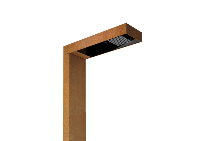 - Pole made of extruded aluminum profile (optional COR-TEN steel sheet) with cable insertion opening, junction box and service door