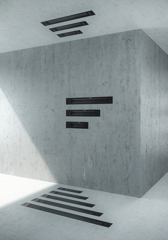 The IN lighting system can be built in flush and without visible screws or fasteners. Thanks to the modular system, different emission characteristics are possible. The IN system with its flat surface comes in five models with three mounting variants. The precise, flush integration into the housing allows architects and lighting designer’s complete freedom with the design of the exterior space without pushing it into the foreground as the object of attention.