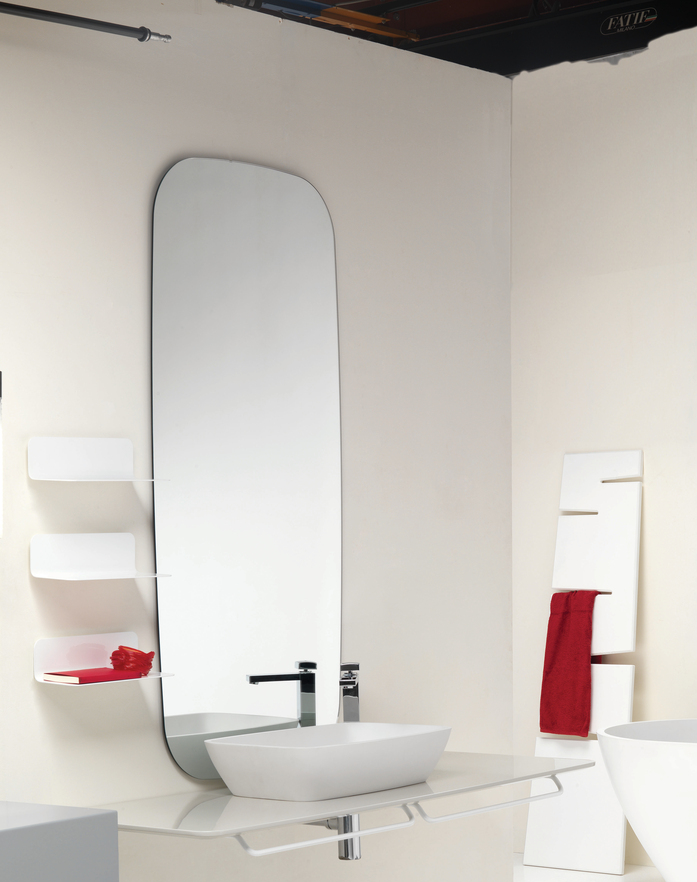 Simple but elegant mirror with sinuous lines. Possibility of horizontal or vertical mounting.