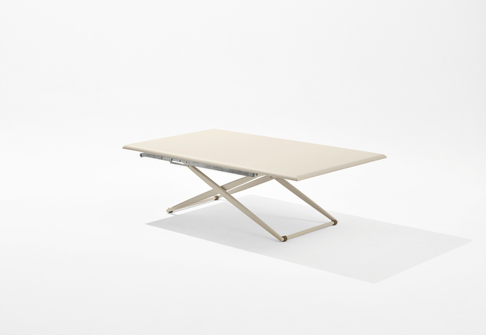 The collection is a timeless approach to year-round outdoor living. It includes a chair with or without armrests, a lounge armchair, a footrest, a coffee table, a set of contract tables and two Up&Down tables (rectangular and square) with three adjustable heights.