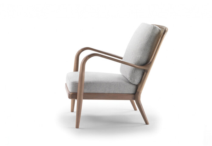 Agave’s slender, shapely structure is a contemporary reinterpretation of consciously familiar shapes. The structure of the armchair is in solid Canaletto walnut or ash, stained in a wide array of sophisticated colors. The Agave armchair comes with a high or low seat back and can be fully-upholstered or crafted with the seat back in in woven reed. This latter version is enhanced with a delicate weave in natural or tinted reed, that lends a graceful, airy lightness to the Agave armchair. An elegant accessory is also available for the Agave bergère – a convenient headrest with soft goose-down padding and metal counterweight.