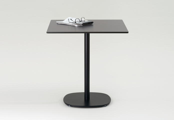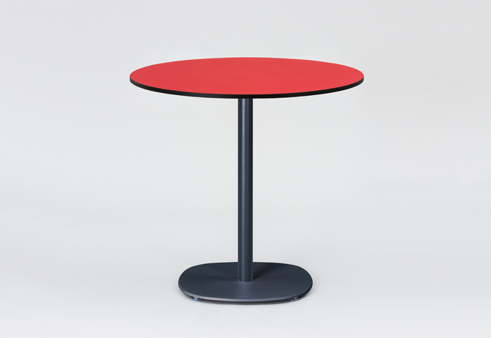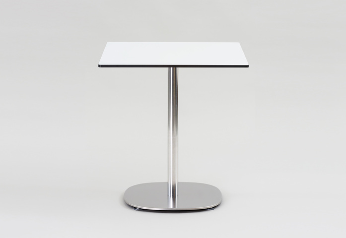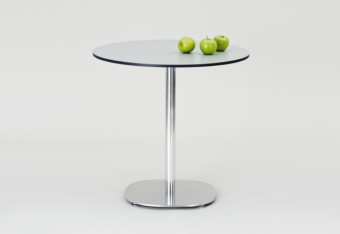 Our entry model in rugged design. Ideal for round as well as for square table tops because of its round disc stand. Disc stand with adjustable gliders (FORMvorRAT System). Preferably used in contract furnishing and gastronomy. Also available as a premium-quality model with disc stand in embossed INOX and chrome-plated centre column.