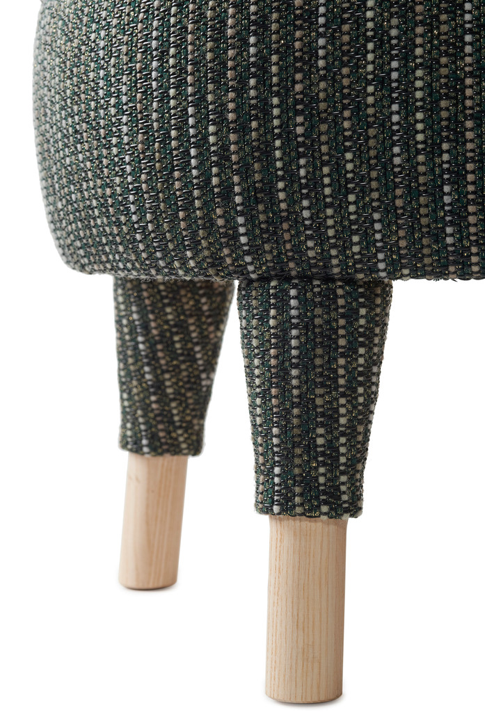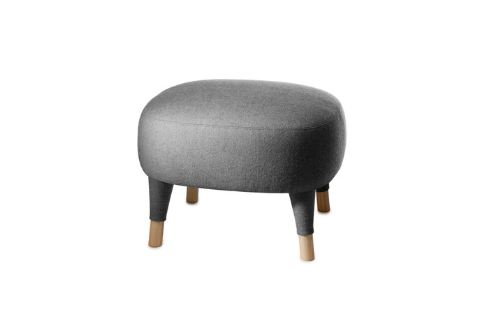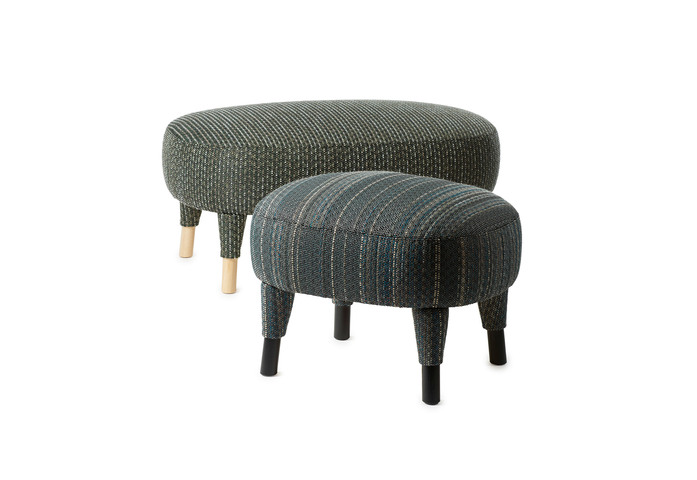 Stool upholstered in fabric or leather. Legs in natural ash. Plastic glides.