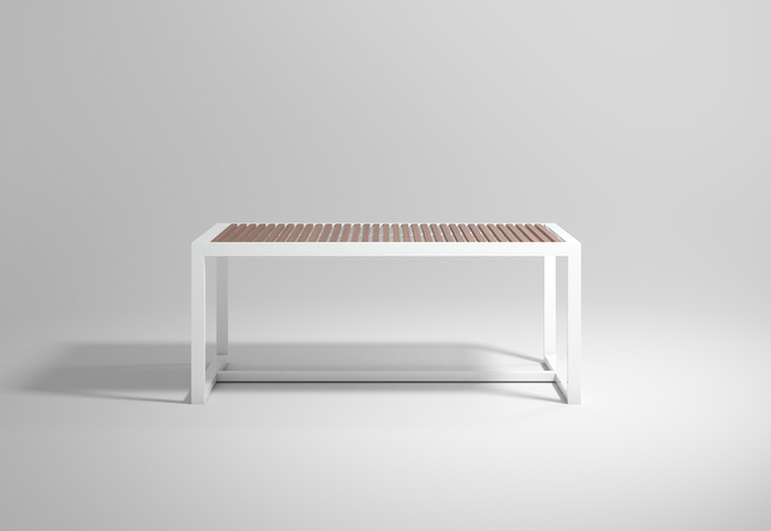 DNA TEAK is constructed using teak timber slats, the perfect counterpoint of the aluminium profiles that characterise the entire collection. Inspired on a game of light and shade that references the archetypal Mediterranean window shutter, as well as the works of those oriental architects who use wooden slats and bamboo stalks. The quality and natural durability of the teak contrasts with the aluminium profile of all the furniture, the favourite material of GANDIABLASCO over the years. Its chestnut tones combine with the anodised aluminium colour and with all the other powder coated tones available within the collection.