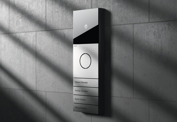 With the modular Gira System 106, door intercom systems can be individually configured, visually adapted to any exterior front or used as a design highlight. As a counterpart to the Gira indoor stations, it offers all required functions such as a doorbell, camera, name plate and house number on the outside of the front door. Robust materials and modern technologies ensure convenience and safety. An additional benefit is the compatibility with all Gira home stations and door communication solutions.