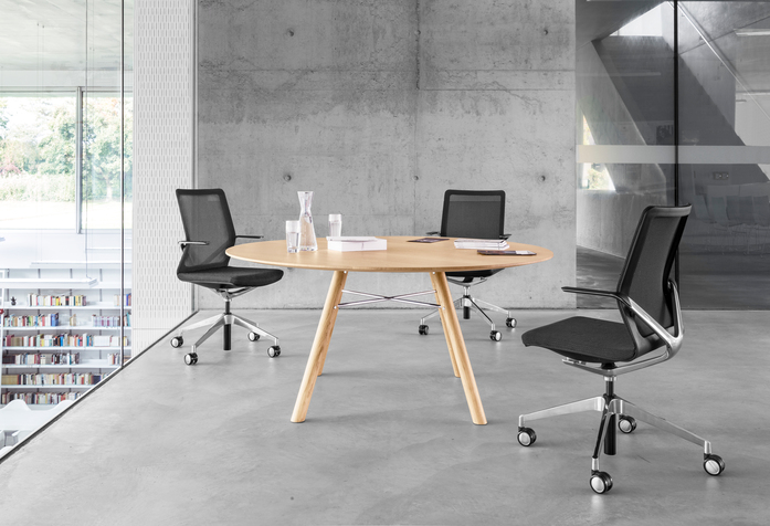 top formats,” comments Mathias Seiler, Head of Design and Marketing at Girsberger, on his design. "The round and oval table tops also promote communication and the choice of wood as a material creates warmth. These are characteristics that are increasingly sought after in working environments today. They make the workplace more inviting and homely."