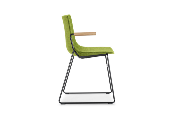 "Nava" is a multi - purpose chair with different frame options and an understated design which is universally suitable for use in offices and public spaces. The flexible, ergonomically shaped seat shell provides a high level of comfort even when sitting for long periods. "Nava" is available with a stackable four - legged frame with or without armrests, or with a skid frame. The skid frame is available in both low and high versions, allowing "Nava" to be used for standing tables too, making it perfect for bistro s, bars and canteens. For events, the skid - frame chairs can be joined together easily using connecting elements to form stable rows. There is also a caddie for stacks of up to 16 chairs to make for easier handling and save storage space.