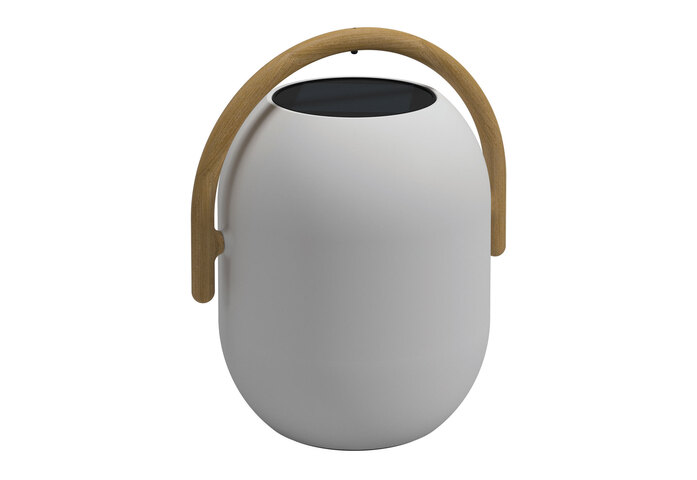 Smooth tough modern plastics are paired with statement buffed teak handles creating Cocoon. For Nest, man-made fibres in either Steel or Fawn colour, encase a colour matched powder coated stainless steel frame. Both styles of lantern create soft mood lighting with the use of integrated solar charged LED lights.