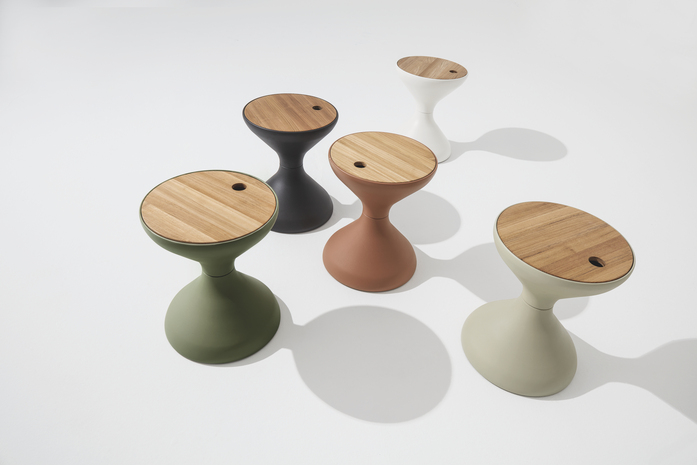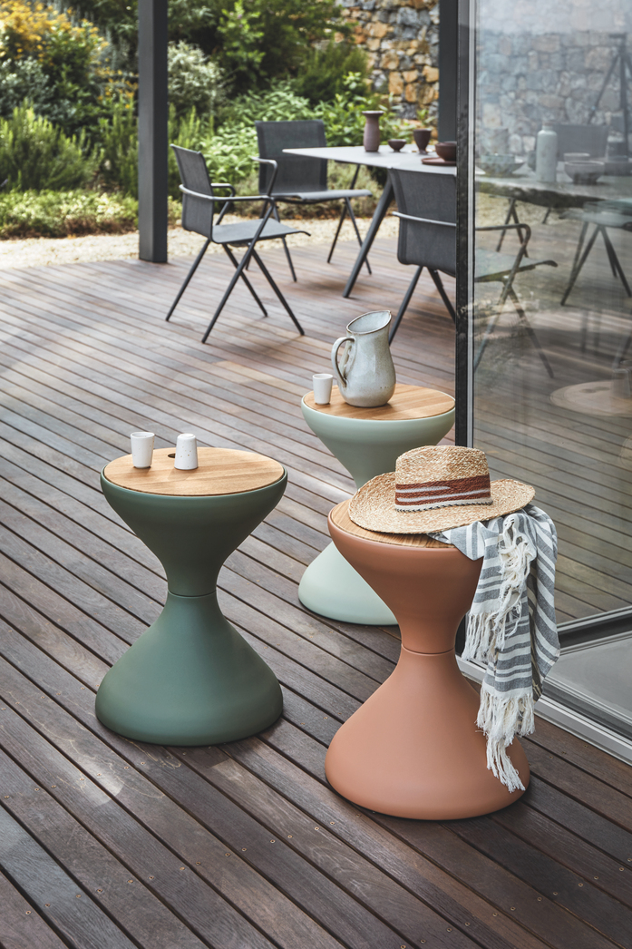 The inspiration is almost too obvious - two bells joined together to make up theshape of this small side table. The organic and fluid lines will make aneye-catching addition to any outdoor area. An optional icebucket insert or a tray insert offer further practicality.