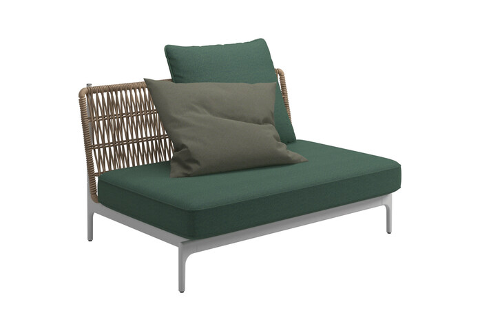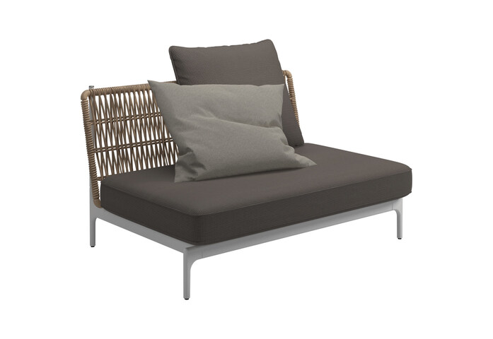 Conceived by noted Danish designer Henrik Pedersen, Grand Weave makes a statement equal to its name. Accustomed to designing product for international markets Henrik carefully selected the oversize, tactile man-made fibres to be stylishly woven around the beautiful aluminium frame to make a deliberately bold statement. Henrik says “We are simple creatures. In nature often scale means strength and integrity and I considered this in the selection of the broad fibres used in this design. I want to inspire comfort and trust - critical parts of the relaxation process.” And the deeply sumptuous scale of the Modular Seating components is not by chance either - again Henrik’s careful deliberations on dimension are used to reinforce the message of quality and comfort.