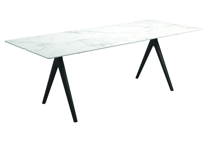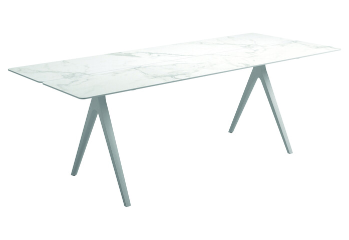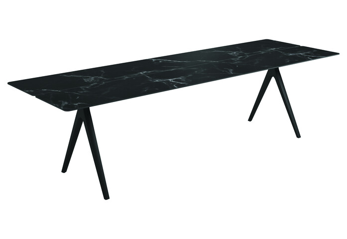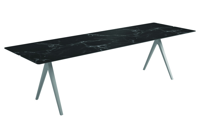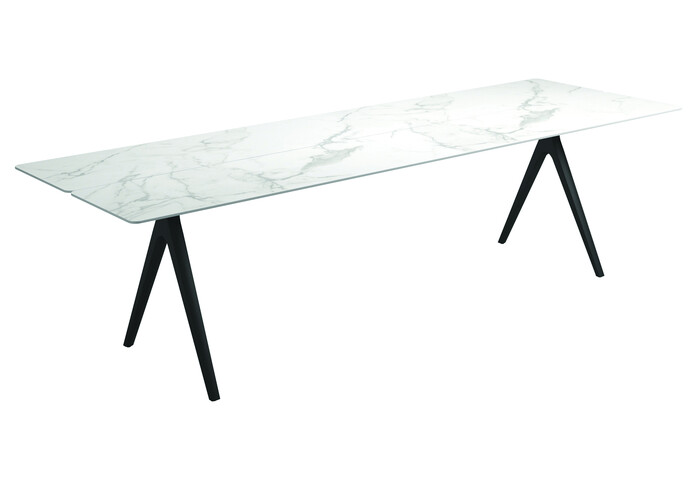 The legs of the Split table have a very characteristic look with an inverted ‘Y’ construction and tapering form, which emphasises a light and subtle connection to the ground. The uneven cutting of the table top slats adds an organic look, whilst tricking the eye with a visual surprise.
