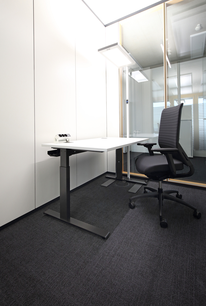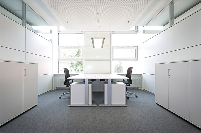 contec is characterised by its clear design and its robust construction. The desk system is as standard fitted with height adjustment (adjustment range: 650 – 850 mm) and it is foldable just as pinatec: Interim storage or relocation, spatial changes or change of staff – contec can be folded up with a single hand movement and it therefore minimizes storage and transport costs.