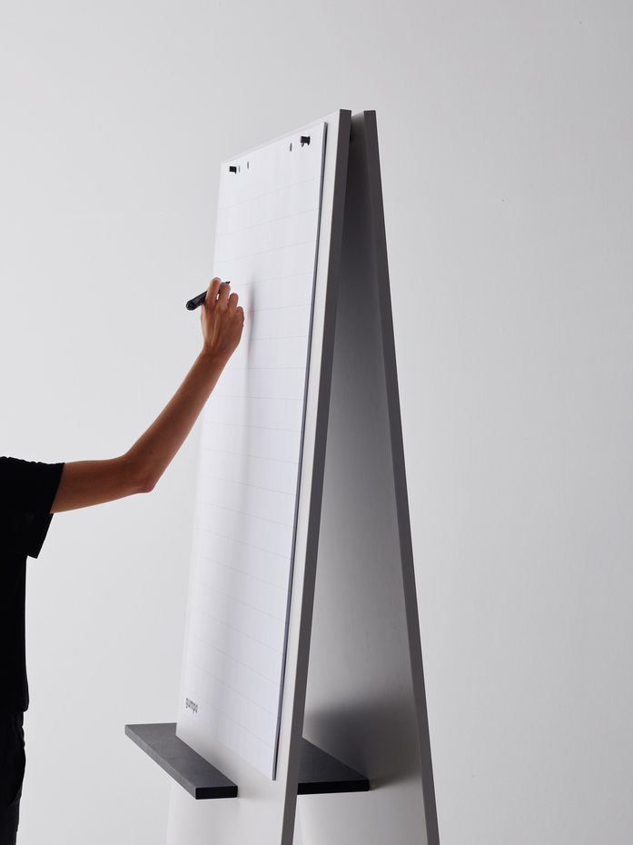 For fast and furious brainstorming, a flipchart is often the best solution. Simple, but not ordinary, Relvãokellermann’s design offers enough space for ideas. It consists of three panels, whose horizontal one can be used as a shelf for pens and tools, while bracing and securing the structure. Due to castors, the flipchart can be easily moved.