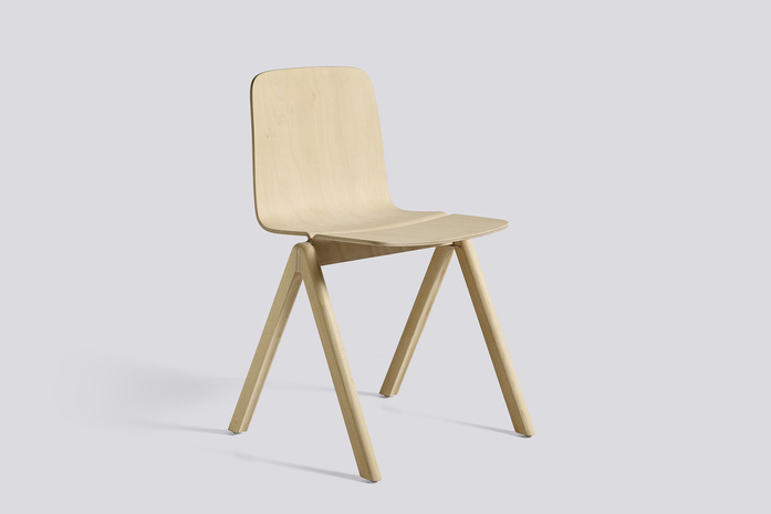 Copenhague Chair is two x two chair legs that meet in an inverse V and two moulded veneer shells that meet in the middle. The sharply bent veneer consists of multiple delicate layers laminated with cheesecloth to make the shell extra strong and give the chair the springy flexibility that is essential in a backrest. The technique was pioneered by the first cantilevered chairs of the Bauhaus school, but here, the university’s practical need for stackability has been incorporated into the design, which makes it possible to stack as many as eight chairs together. The stackability also comes in handy in a private home, making it easy to store spare chairs for extra dinner guests.