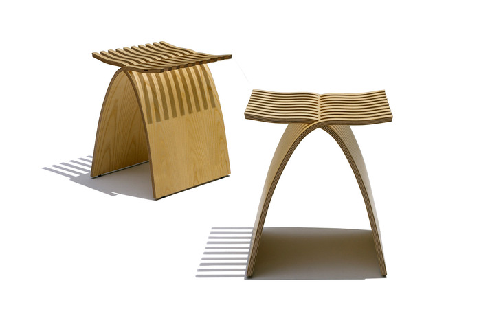 Pondering her new project – to build a better stool – designer Carol Catalano noticed her own entwined fingers and had her answer. The Capelli stool is two identical plywood pieces, each with undulating 'fingers' at the top that interlock without tools or fasteners. It's an ingeniously stable and graceful structure that's pleasant to sit on and simply beautiful to look at.