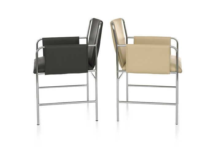 Upholstery wraps a welded tubular steel frame to create seat, sides and back. Likewise, the Envelope chair wraps around the sitter. Ward Bennett designed this comfortable and comforting chair in 1966. It has been in production ever since. As right for public areas as it is for private spaces, Envelope has a timeless aesthetic. Envelope comes in many metallic finish, textile and leather options.