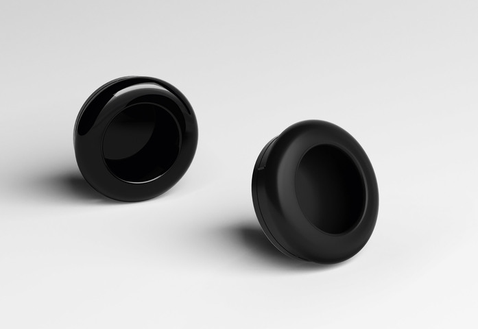 Flush pull design 538 ML made of through-dyed matt polyamide, diameter 60 mm, 20 mm high, recess depth 13 mm, with grip recess. Article no.: