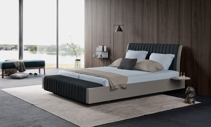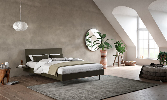 izzy – A bed is just a bed. This may be true for some beds. But not for izzy, an innovative bed system that combines timeless design with the option of integrating your preferred base system. You get to choose your own design: pick a bedside height and material thickness, with or without storage compartment at the foot of the bed. How about background lighting? Cable management? Detachable padding on the headboard? Would you like your bed floating or standing, on feet or a pedestal? An attachable table? izzy offers you all the choices in the world.