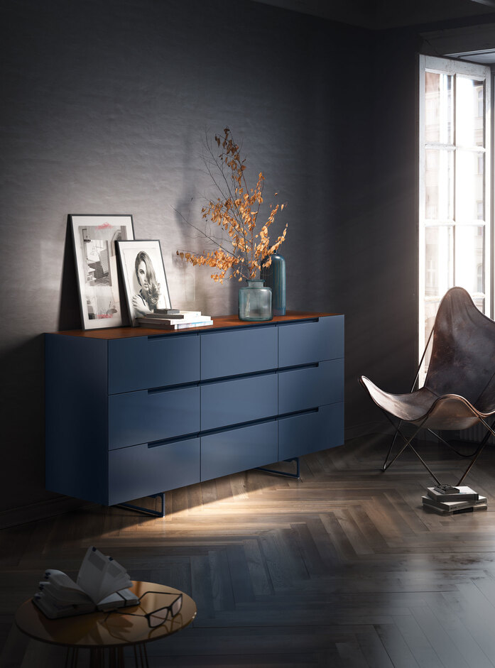 In mell, interlübke has combined its unique and inimitable lacquered surfaces with the finest materials from the natural and technological worlds. High-quality woods and genuine stones are contributed by nature; different colours, surfaces and structures create elegant tone in tone compositions with matt lacquer cabinets or accentuate fine highlights.