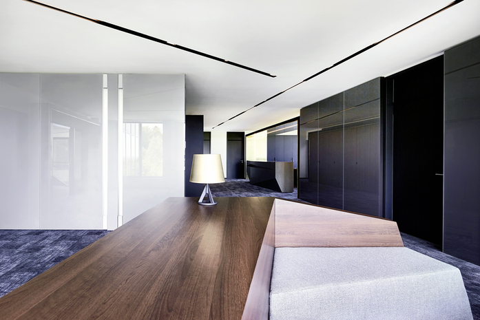 The lighting system "Kreon Kagi" by Kreon combines various accent lighting with linear lighting and convinces with its spatial flexibility.