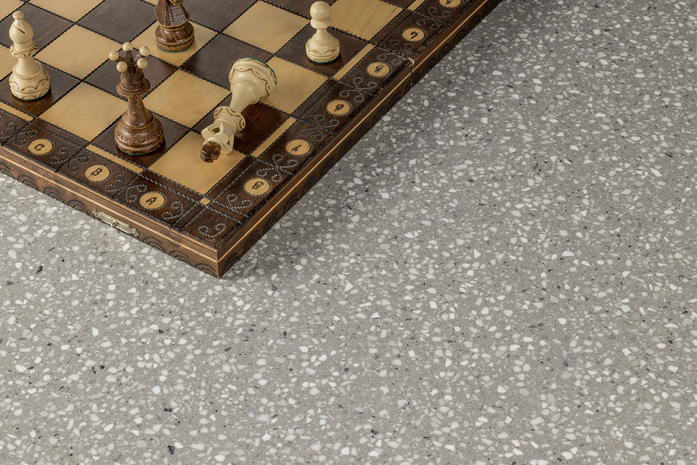 The TERRAZZO series is a new collection by Krion™ that commemorates the mid 15th century emerging trend in Venice for leftover pieces of marble to be re-used to make a cement-bonded composite that would become known as terrazzo, the building material emulated by this series.