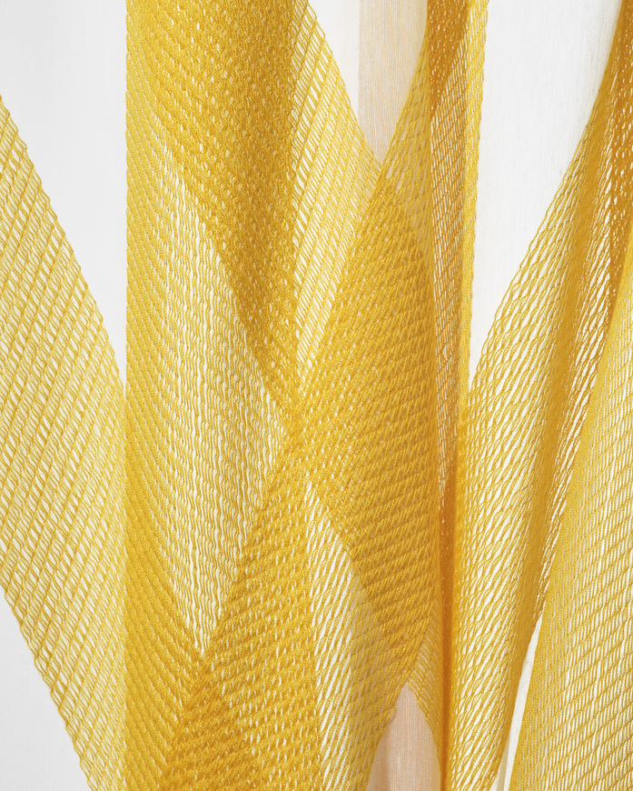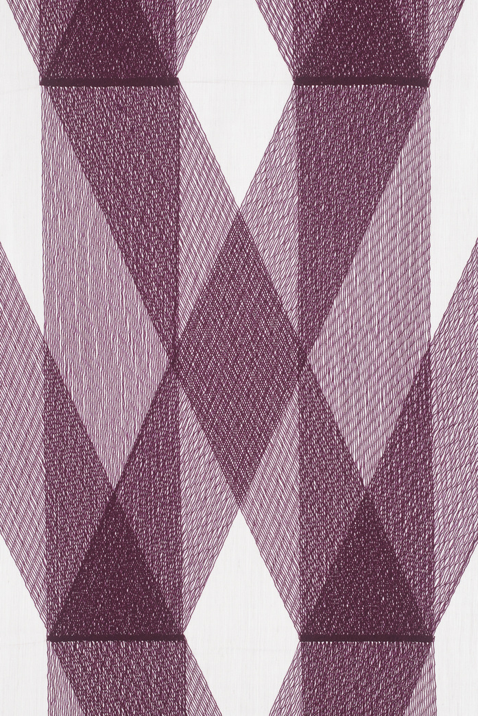 While the curtains share the same pattern, they are distinctively different. Rennes features wide, diagonal and vertical, densely stitched stripes which intersect, creating eye-catching geometric forms. Where the stripes meet and overlap, shapes of varying transparency are created, which dissolve into each other.