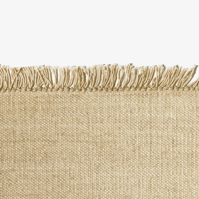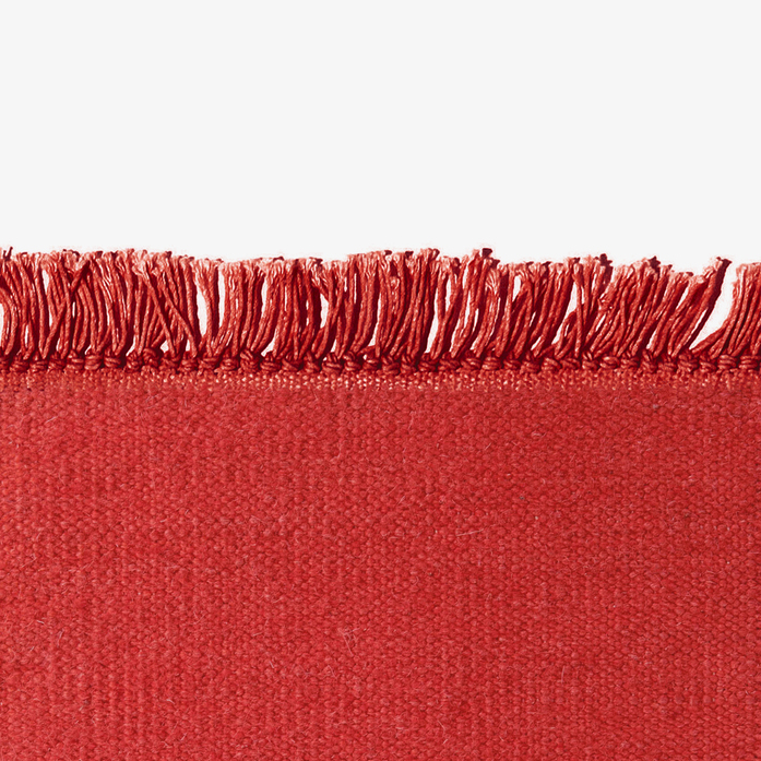Vintage is a unicoloured kelim made from fine yarn with a versatile, vivid colour palette. As these yarns are hand spun, the rug has an intriguing, slightly irregular surface. Vintage’s nuanced colour gradations, which have an abrash character, are created by combining subtly coloured yarns and a special washing technique. Available with same coloured, cross coloured and naturally coloured fringes, as well as without fringes, Vintage is a particularly hard wearing rug. It gains its strength from the kelim technique.
