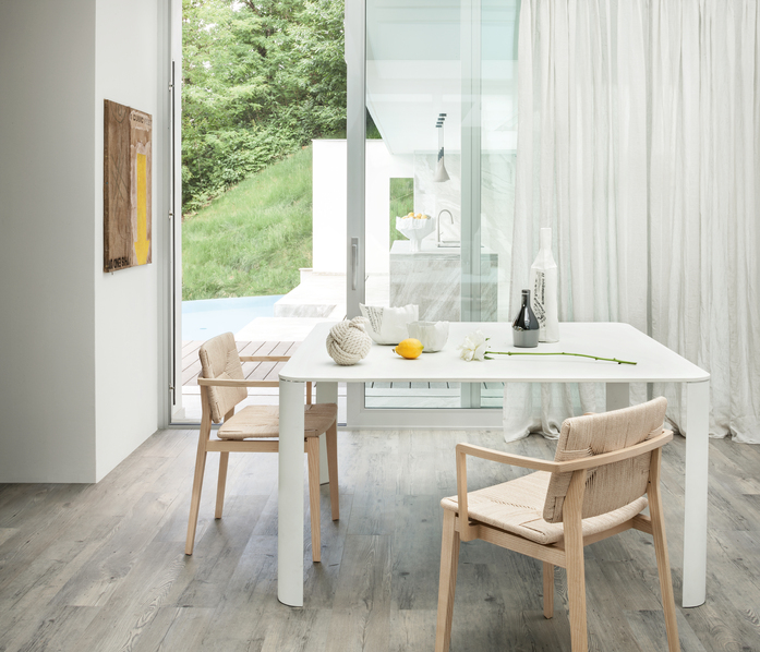 The wide and, at the same time, thin top gives this table a unique lightness, in sober contrast with the solid wood and its texture. The round shaped leg follows naturally the edges of the top. Height, length and width can be varied according to the customer’s need, as in Lema best tradition.