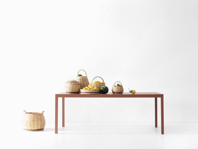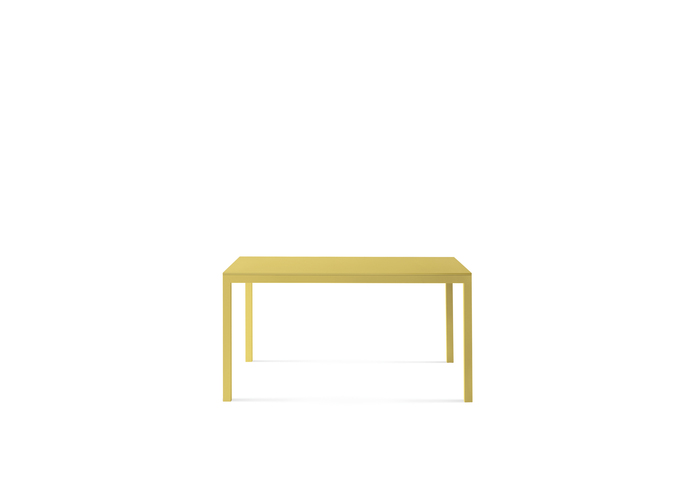 Simple, yet versatile: a painted metal structure with a wooden or lacquered top, or a glass top for a more formal dining.