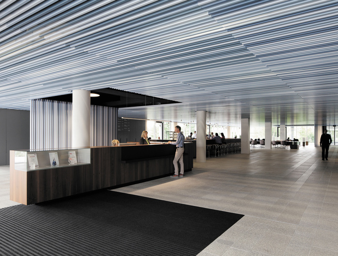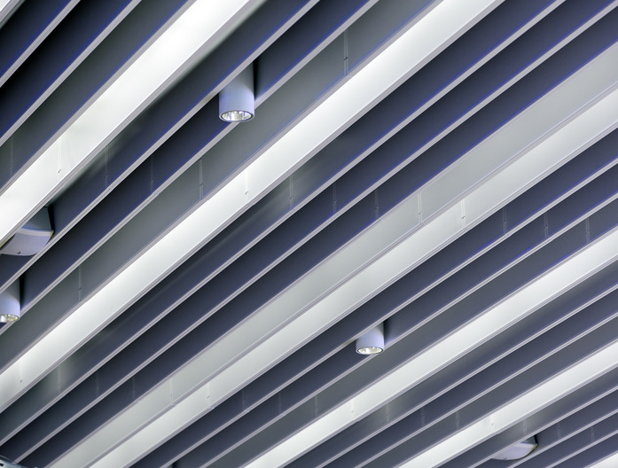 Baffle Ceilings create unique room atmospheres. These open ceiling constructions allow a view of the bare ceiling. They are ideally suitable for retrofitting to correct acoustic problems with bare ceilings and to create a distinctive design effect. Besides linear baffle systems, wavelike baffles are available as a design variant.