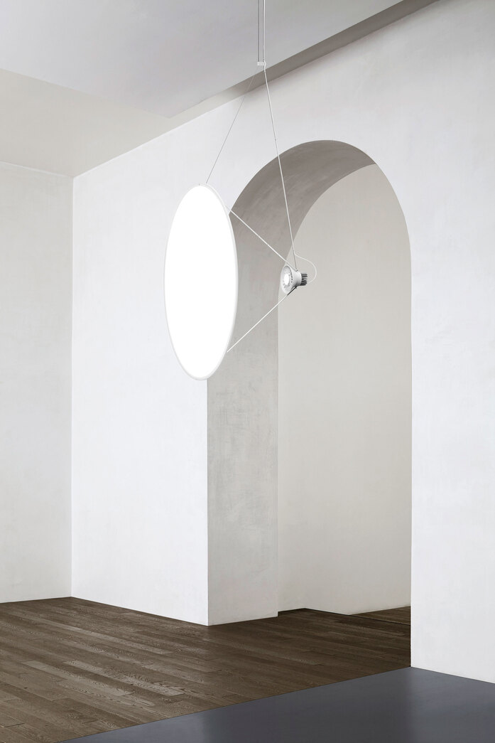 Daniel Rybakken and Luceplan have done their magic – and the result is an extensive ceiling luminaire using an inconceivably simple principle.