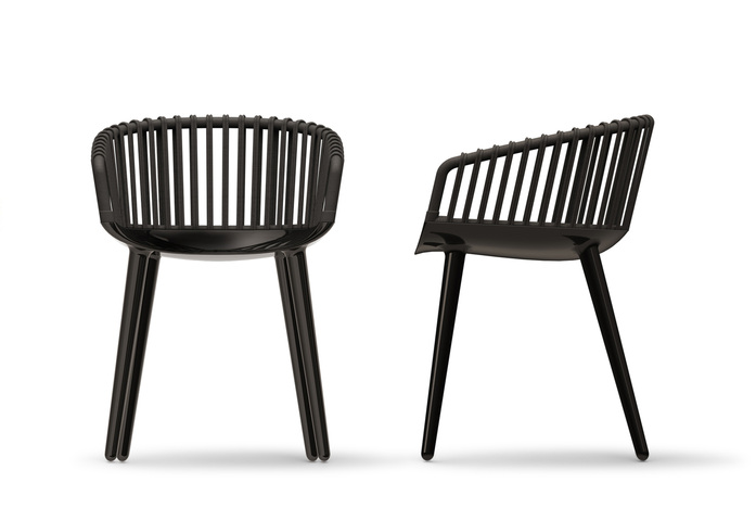 Material: frame in air-moulded polycarbonate. Back in wicker. Also available cushion in expanded polyurethane covered in fabric (Kvadrat “Divina MD”, “Divina Mélange” and “Remix”).