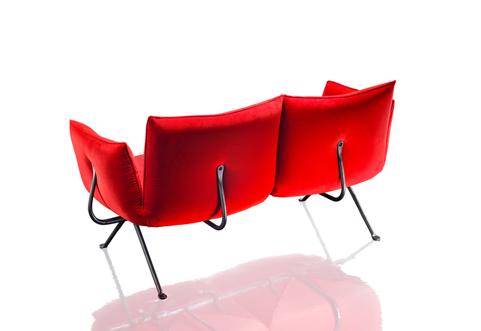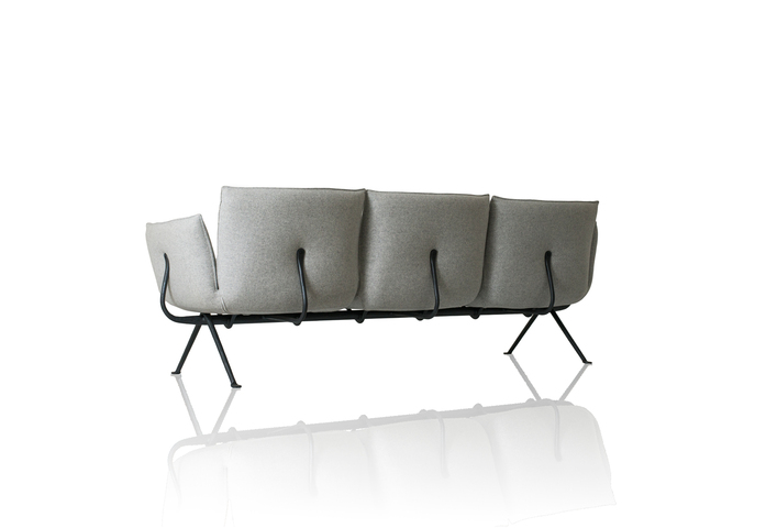 Following the tables, chairs and stools, the collection expands further with a series of accessories, with a low chair, with a twoseater bench and a collection of upholstered pieces (armchair, ottoman, two and threeseater sofas). All these pieces feature a forged iron structure, with the allure of a raw material handed down through the centuries, alive, with those slight imperfections that make each item in this collection unique, with a profoundly refined and elegant spirit.