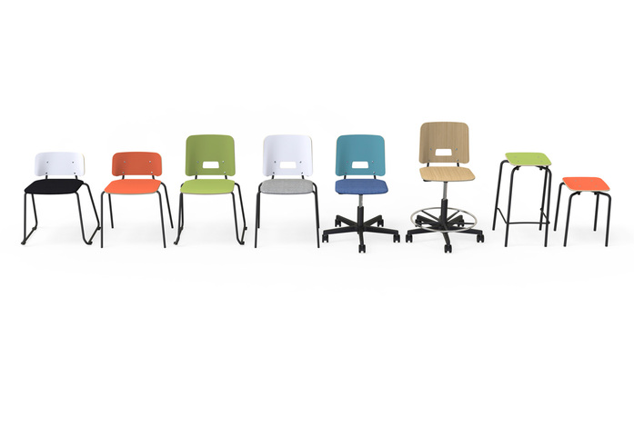 Grip NxT is the updated version of the popular Grip series. Both its look and its laminate colour scheme have been modernised. Stools with a four-leg base also were added to the collection. The Grip NxT stool's compact size and two different heights mean that they easily fit into different types of spaces. The name of the series, Grip, comes from the innovative way the chairs grip the tabletop. The stools can be hung from a tabletop without a separate fitting. The stools are also stackable, which makes them suitable for spaces that need to be easily modifiable. Mikko Halonen originally designed the Grip series for schools, but it is equally suitable for working environments. The Grip series includes chairs, stools and tables. Base: chrome, painted grey, white, black or Inspiring Colours. The form-pressed seat and backrest in laminate: oak or birch pattern, white, grey, green, orange and turquoise. Upholstered seat cushion also available.